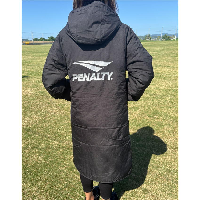 PENALTYコラボオリジナルロングコート。 フード裏のアルミプリントで保温力アップ! シックなシルバープリントなので、日常に馴染みます。
