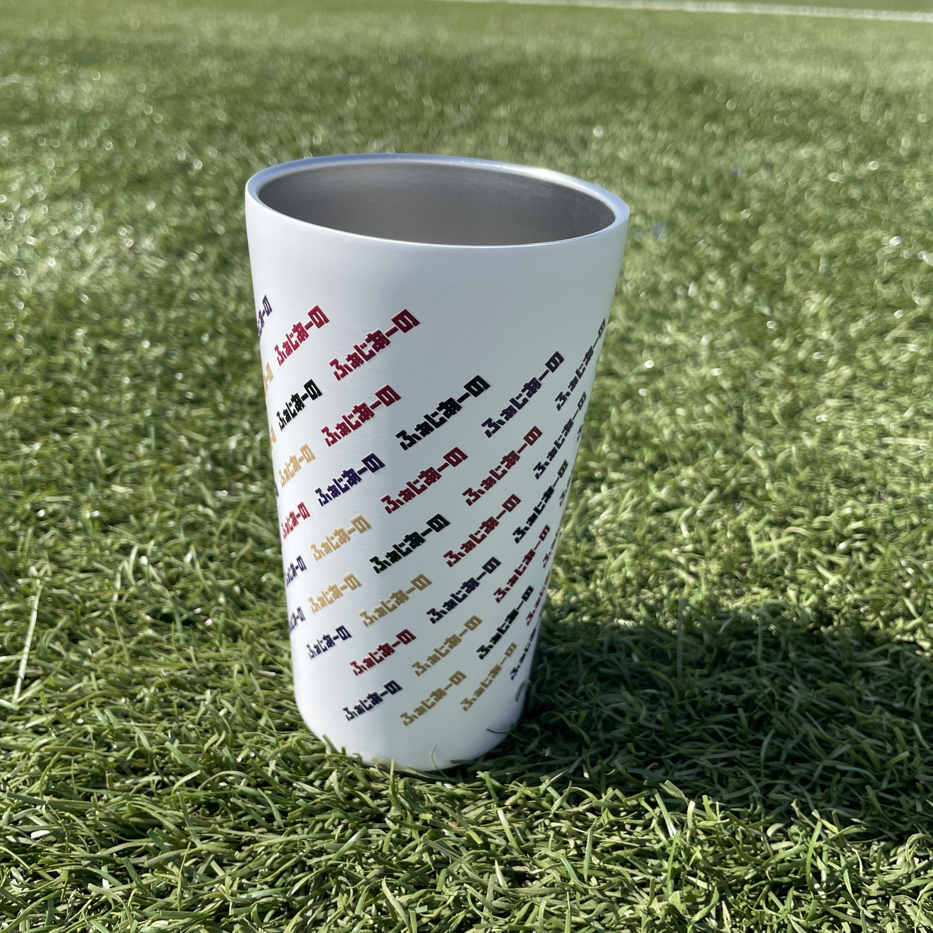 ひらがな「ふぁじあーの」オリジナルフォントをデザインしたステンレスタンブラー。 サイズ:約φ82×140㎜ / 450ml 【お取り扱い上の注意点】 ・加工面はキズや擦れが目立ちやすいため、鋭利なものや硬い物質との接触を避けてご使用ください。 ・摩擦や衝撃により傷がつきやすいため、お取り扱いにご注意ください。 ・表面加工の性質上、強くこすると色移り刷る可能性がございます。
