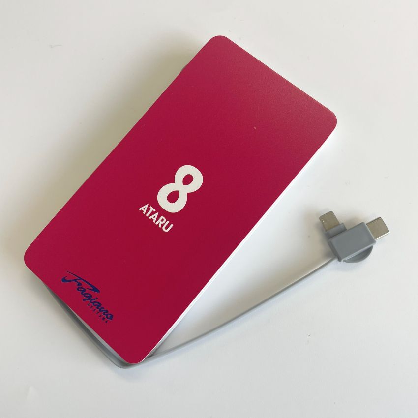 長時間移動や外出先でのスマホ使用頻度の高い方におすすめな「モバイルバッテリー」。 ※展開:エンブレム/ファジ丸/全選手N&N ※サイズ:約縦99×横63×厚み14㎜